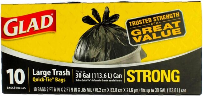 GLAD TRASH BAG 30gal QUICK TIE – 10ct BLACK