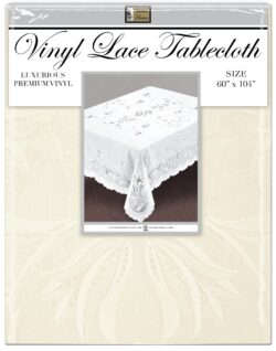 TABLECLOTH,VINYL LACE WT/BEIGE 60″ x 104″
